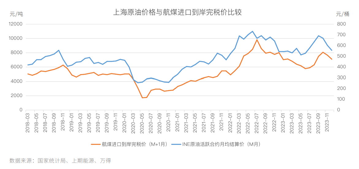 2024年中国石油市场概览——上海原油月均价能够较好反陕国内航煤价格