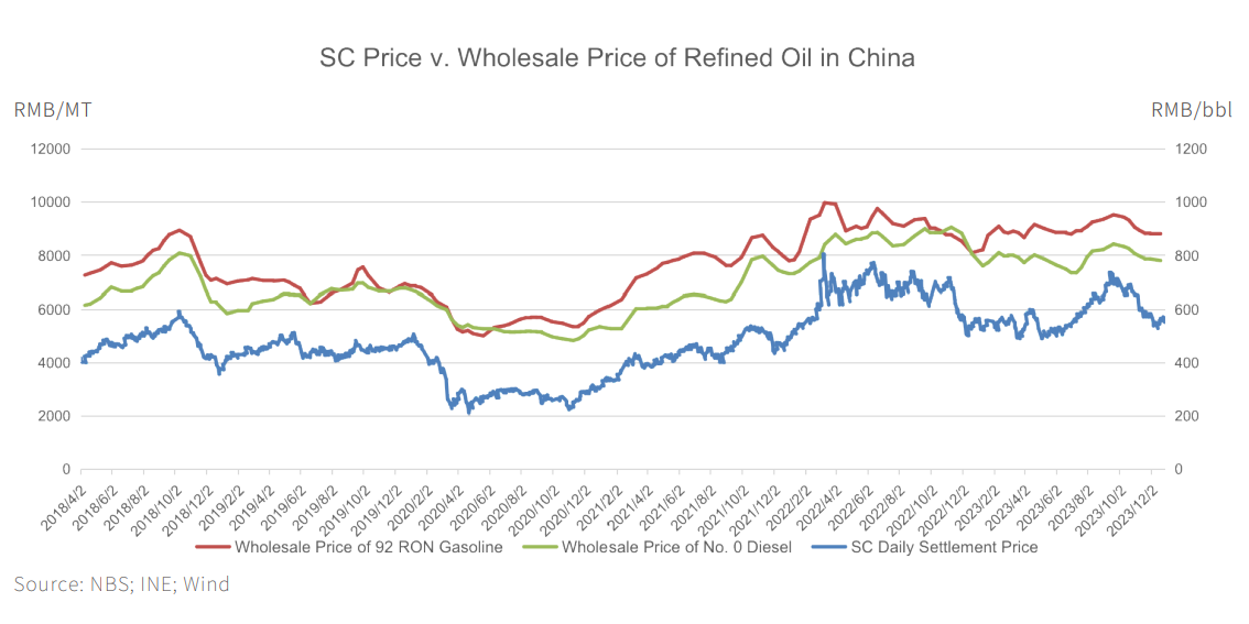 2024年中国石油市场概览——I High correlation between the daily SC price and the refined oil wholesale price in China