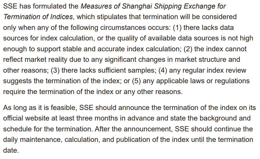 集装箱运价指数(欧洲服务)期货——Termination of publication of Containerized Freight Index (Europe service)
