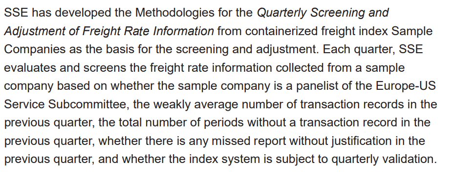 集装箱运价指数(欧洲服务)期货——Methodologies for the quarterly screening and adjustment of freight rate information from Containerized Freight Index (Europe service) sample companies