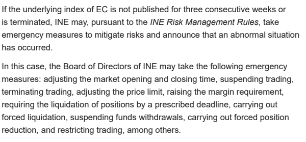 集装箱运价指数(欧洲服务)期货——Response to when the underlying index is not published for three consecutive weeks or is terminated