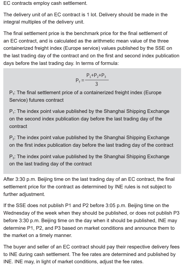 集装箱运价指数(欧洲服务)期货——Delivery Rules