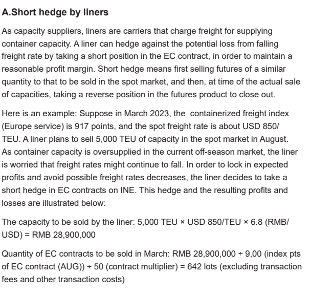 集装箱运价指数(欧洲服务)期货——Examples of hedging with EC contracts(A)