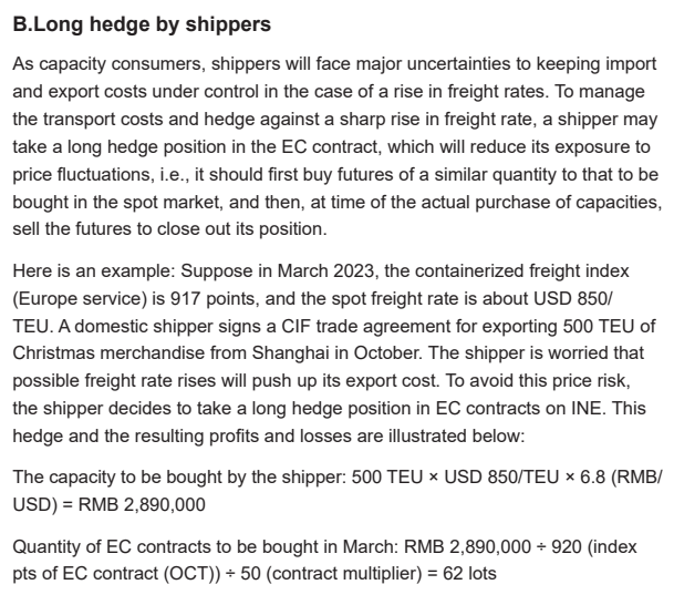 集装箱运价指数(欧洲服务)期货——Examples of hedging with EC contracts(B)