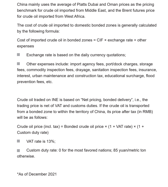 原油期货交易手册2023版——Costs of Crude Oil Imported to Bonded Zones