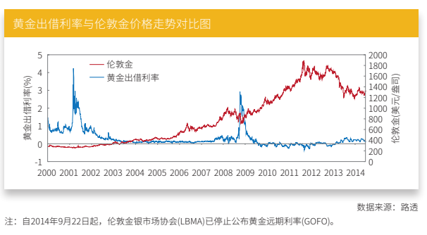 可能下跌;相反,当该利率走低时,大型银行倾向于借入黄金,实物黄金的需求