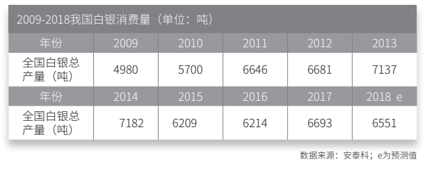 安泰科>。世界白银协会数据显示,2018年国内银饰和银器消费分别下滑4.8%和