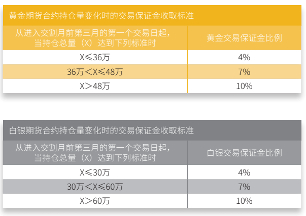 保证金收取标准。当日结算时,若某一期货合约持仓量达到某一级持仓总量,则