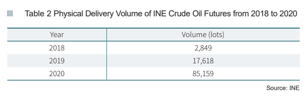 In 2020, physical delivery was performed against 85,159 lots of INE crude oil