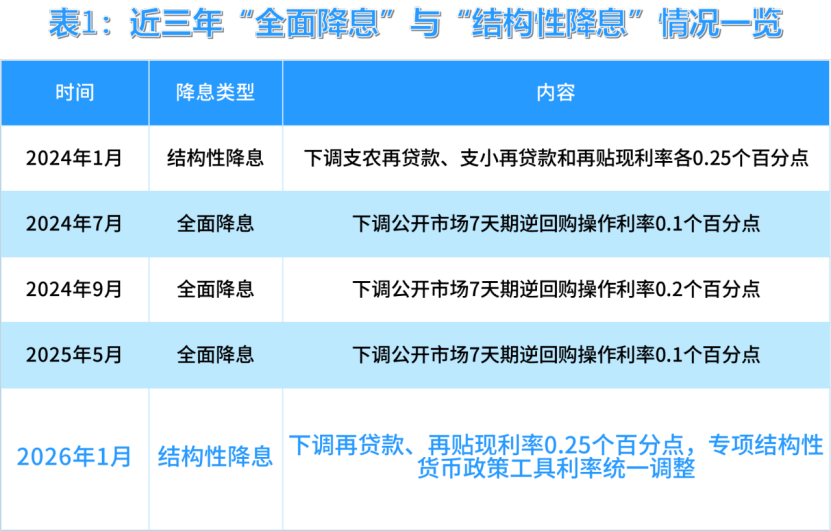 表1:近三年“全面降息”与“结构性降息”情况一览