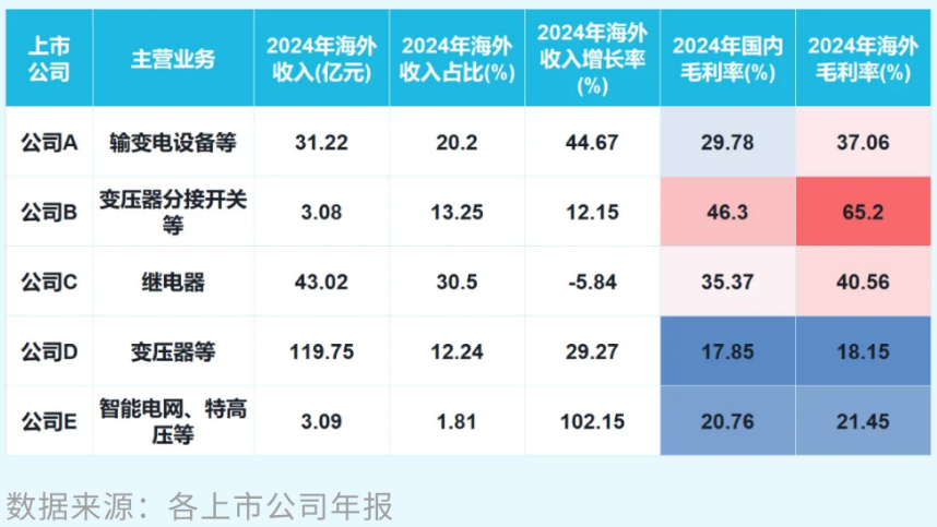 整理部分已有出海业务的上市公司的年报可以发现,海外收入普遍呈现出高速增长,且各家电网设备公司的海外毛利率多数高于国内毛利率,有助于提升行业的整体盈利质量。