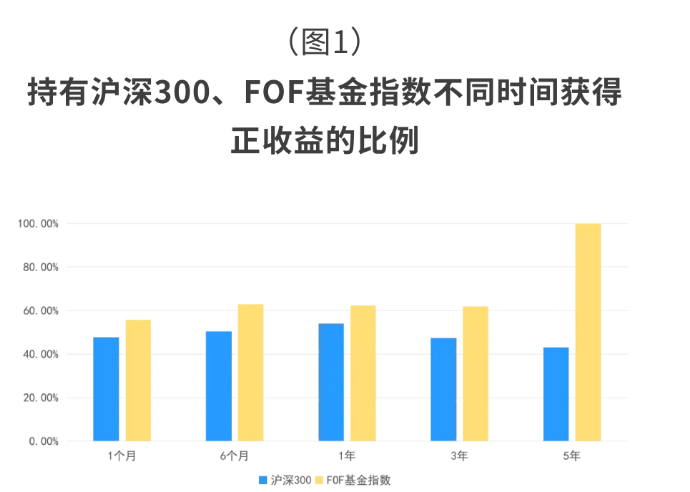 图1:持有沪深300、FOF基金指数不同时间获得正收益的比例