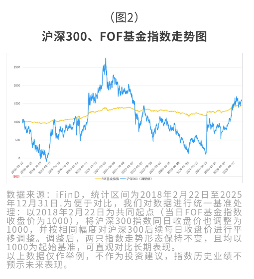 这表明,FOF基金依托专业资产配置与分散投资,能够在波动市场中有效降低组合波动、提升收益稳定性(见图2)。正是因为长期来看波动更小、持有体验更平稳,FOF基金更适合长期持有,也更有利于投资者坚持到底,真正享受到时间带来的复利价值,让时间成为收益的朋友。