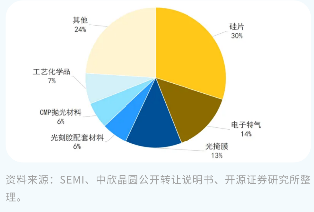 从市场结构看,硅片、电子特气和光掩膜占据了主要规模。